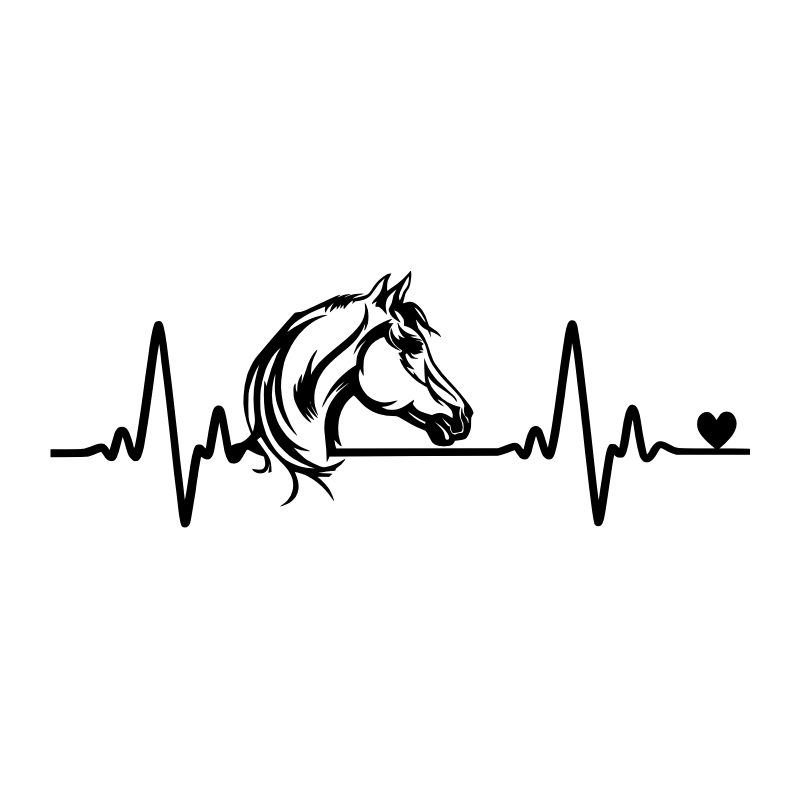 Sticker cheval représentant un électrocardiogramme et un coeur pour marquer votre passion du cheval, idéal pour les passionnés d’équitation et de décoration nature. Affirmez ce lien fort avec ce sticker cheval réalisation 123-stickers.com.
