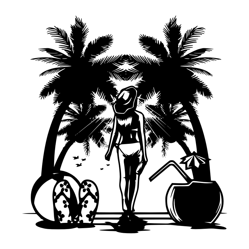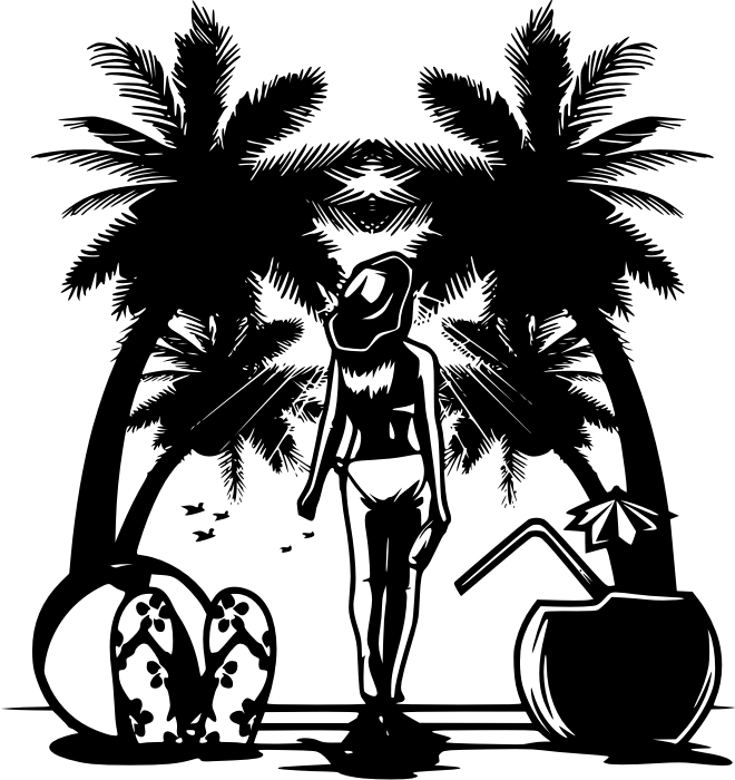 Ce sticker Plage Femme Cocktail évoque immédiatement le soleil, le sable chaud et l’évasion.