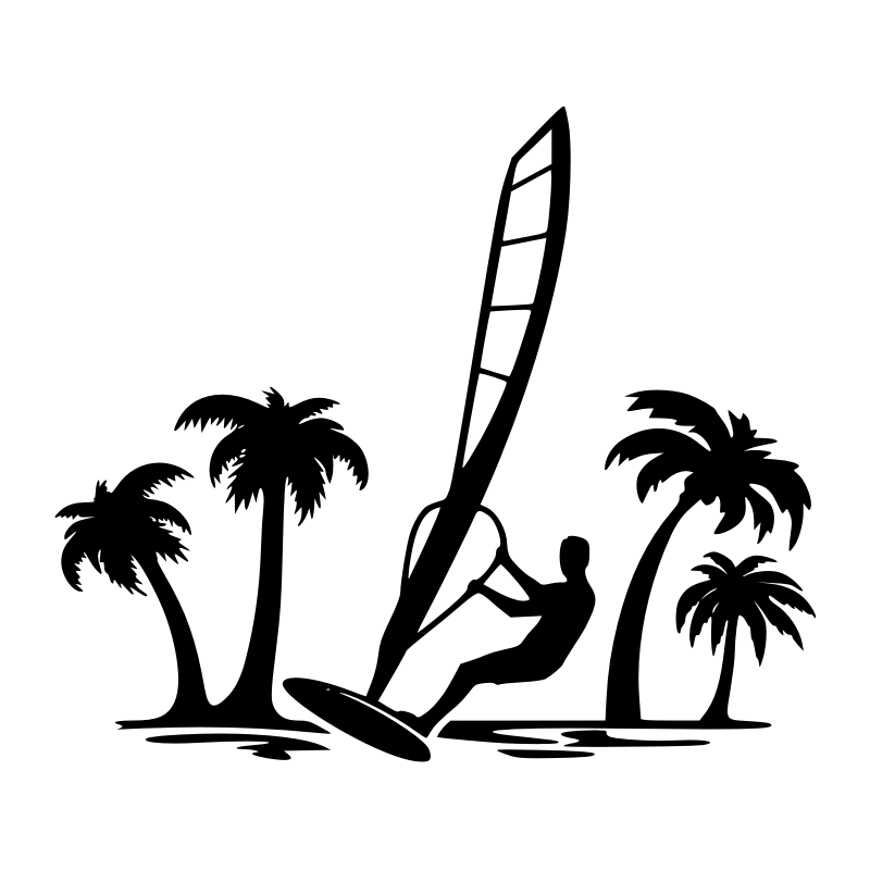 Ce sticker Planche à Voile Palmier évoque immédiatement le soleil, le sable chaud et l’évasion.